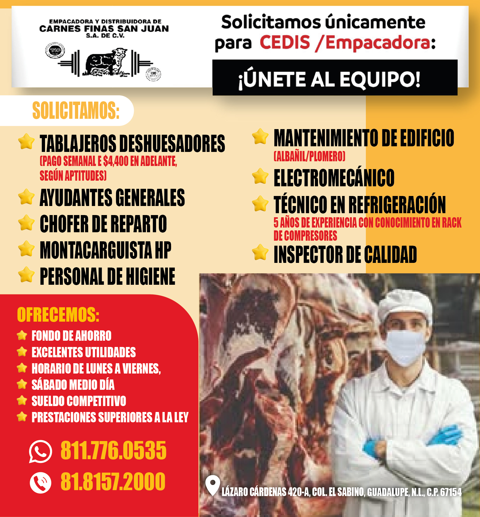 🥩 ¡Estamos contratando para CEDIS / Empacadora!