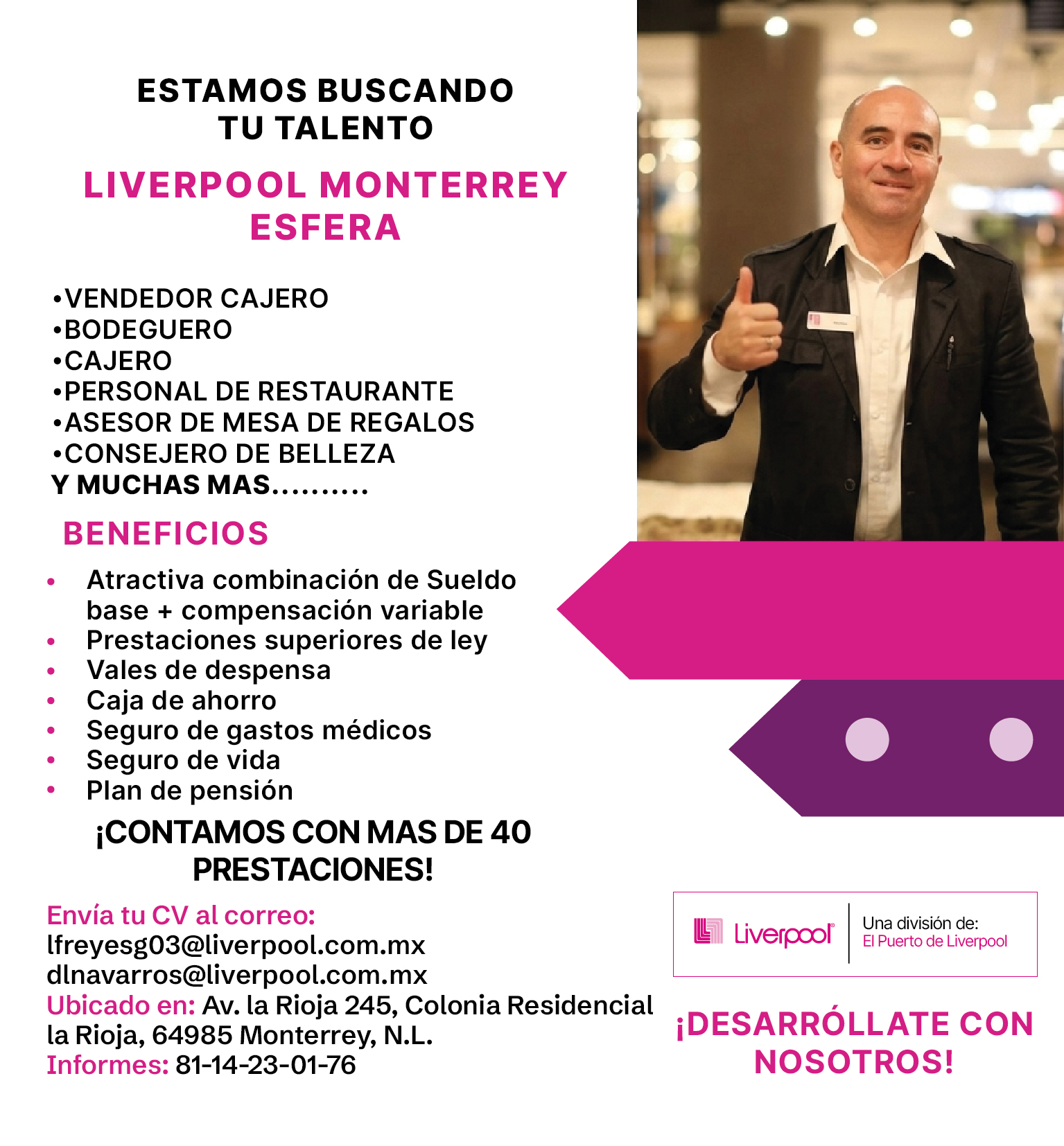 En Liverpool Monterrey Esfera estamos en búsqueda de talento como tú 👇