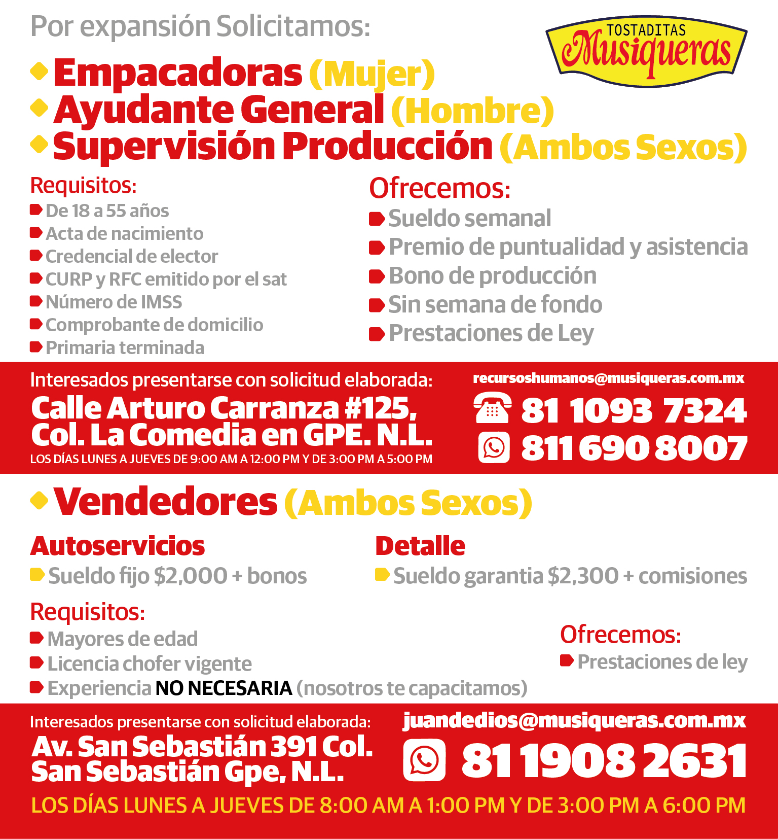 Por expansión estamos contratando personal comprometido y con ganas de crecer 💪