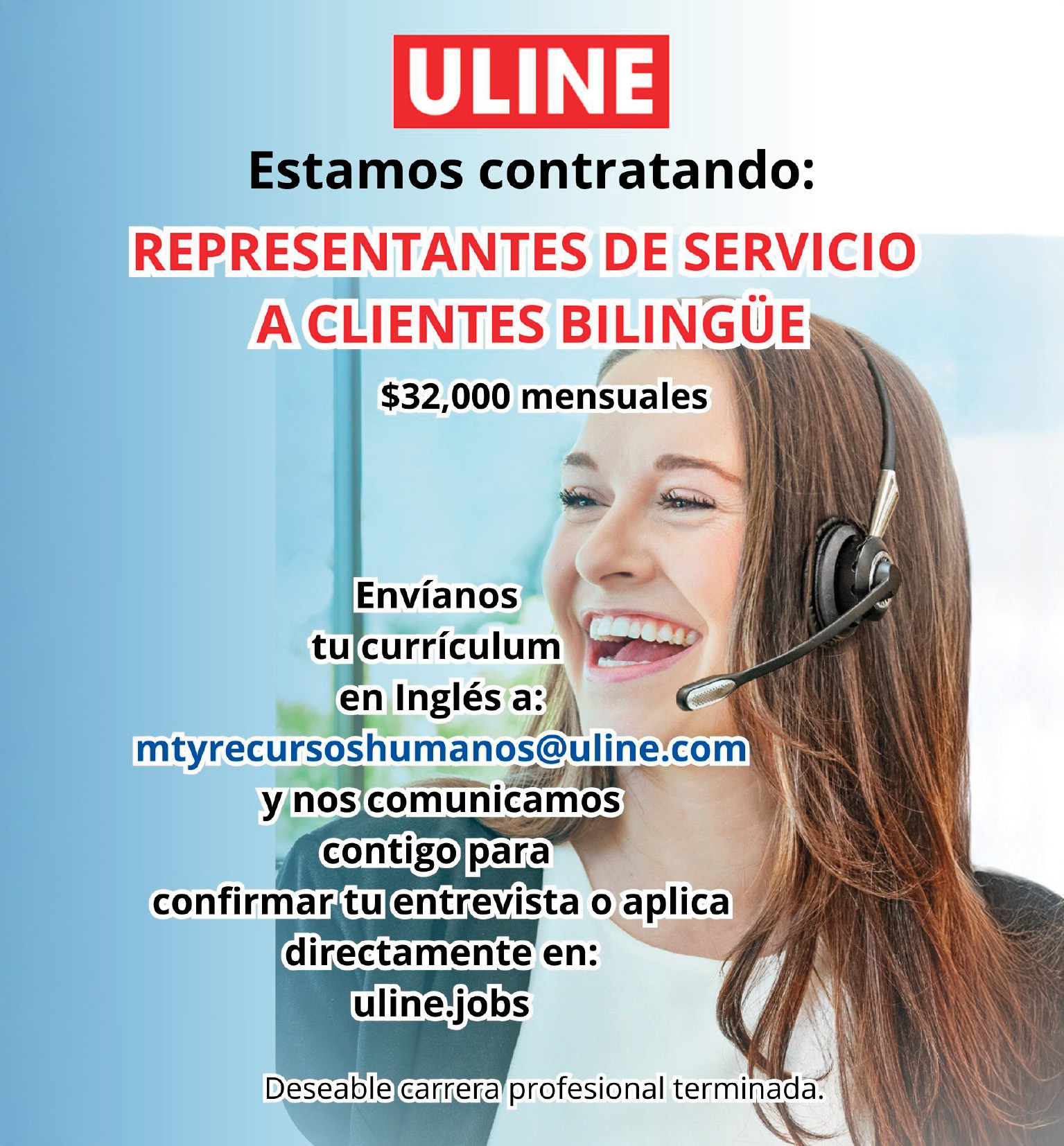Envia tu Curriculum a: mtyrecursoshumanos@uline.com