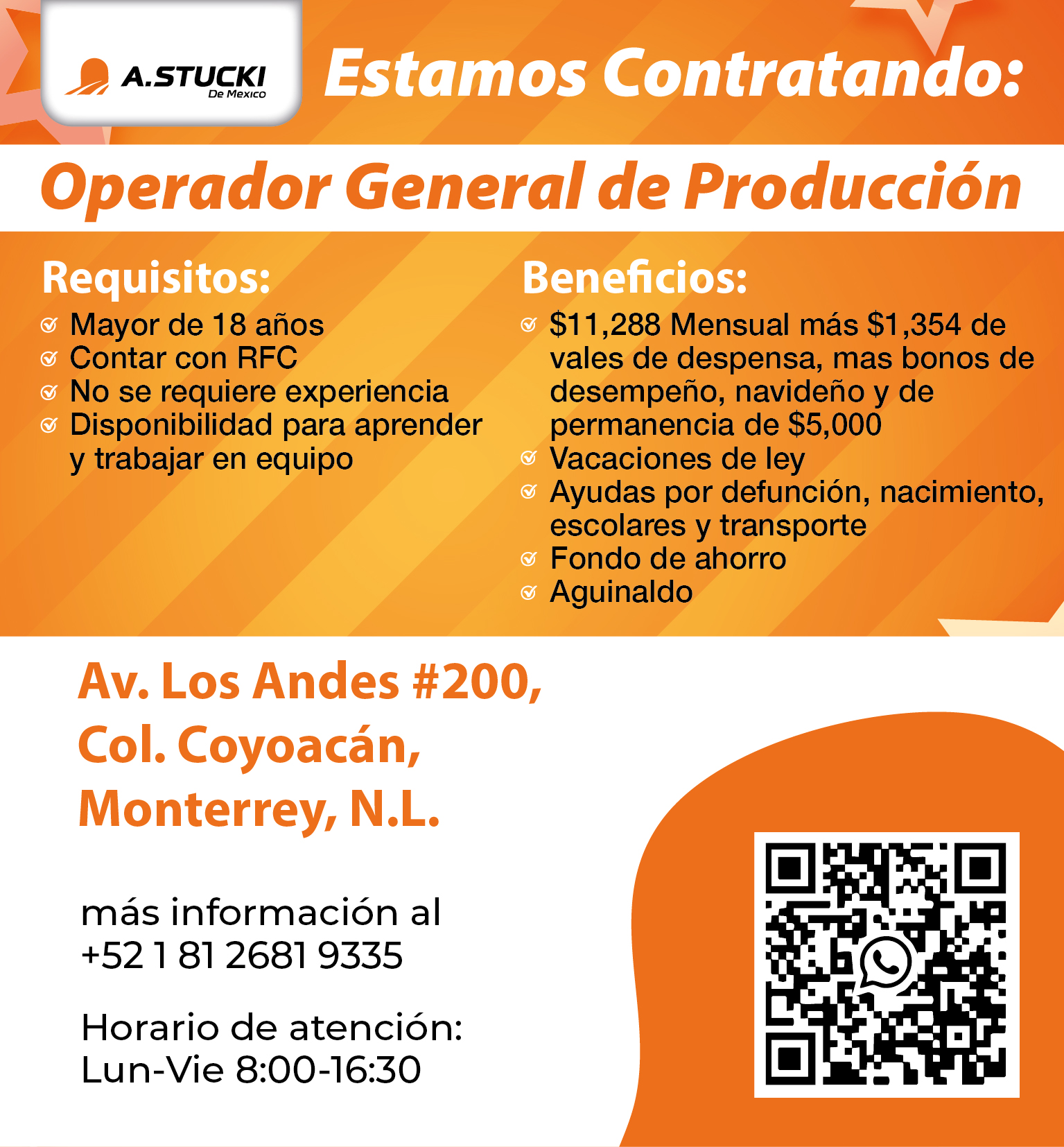 En A. Stucki de México buscamos personas con ganas de trabajar y crecer 💪