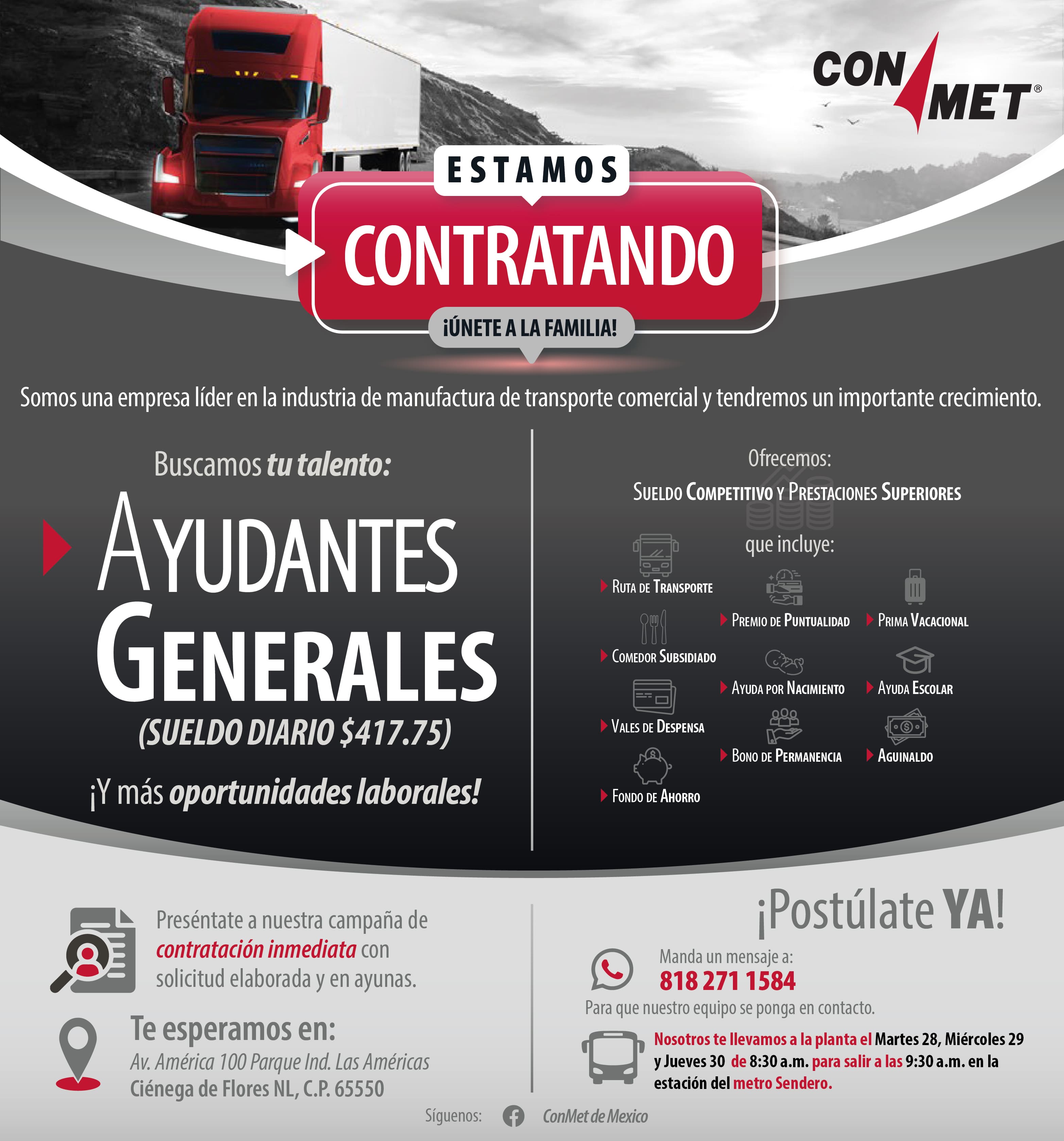 En ConMet estamos creciendo y buscamos personas comprometidas para integrarse a nuestro equipo 👇