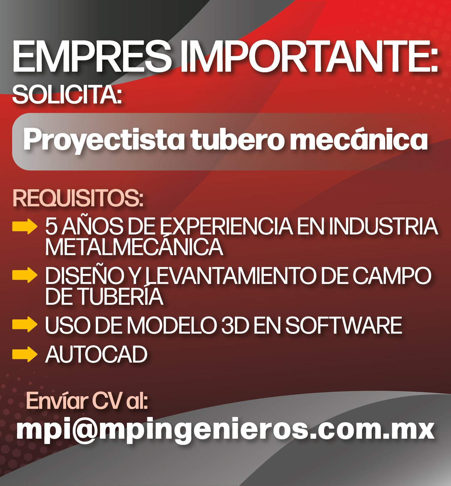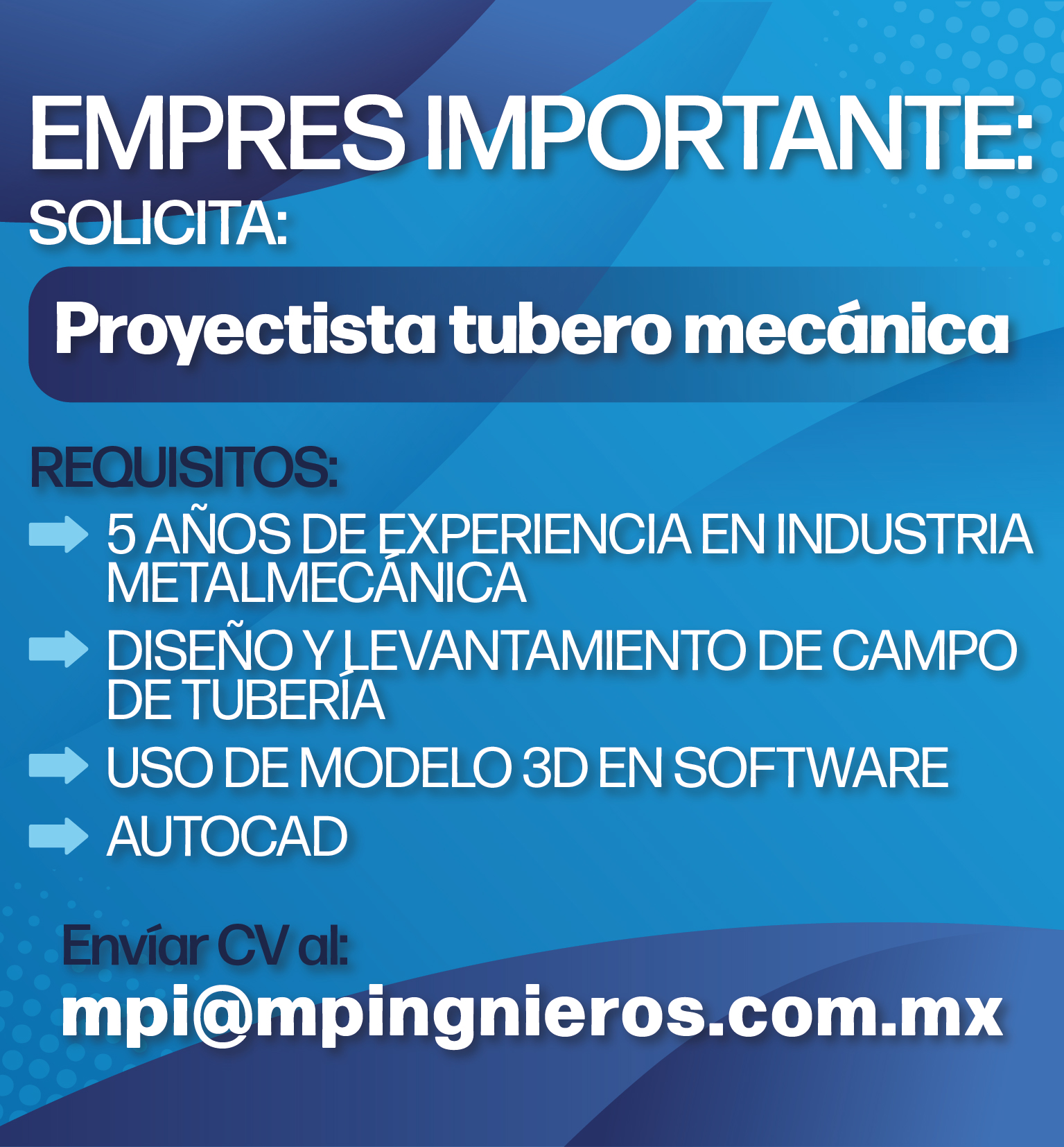 📩 Envía tu CV a: mpi@mpingnieros.com.mx