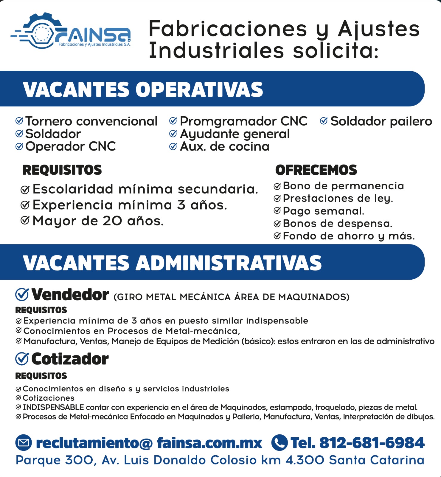 📩 Envíanos tu CV: reclutamiento@fainsa.com.mx