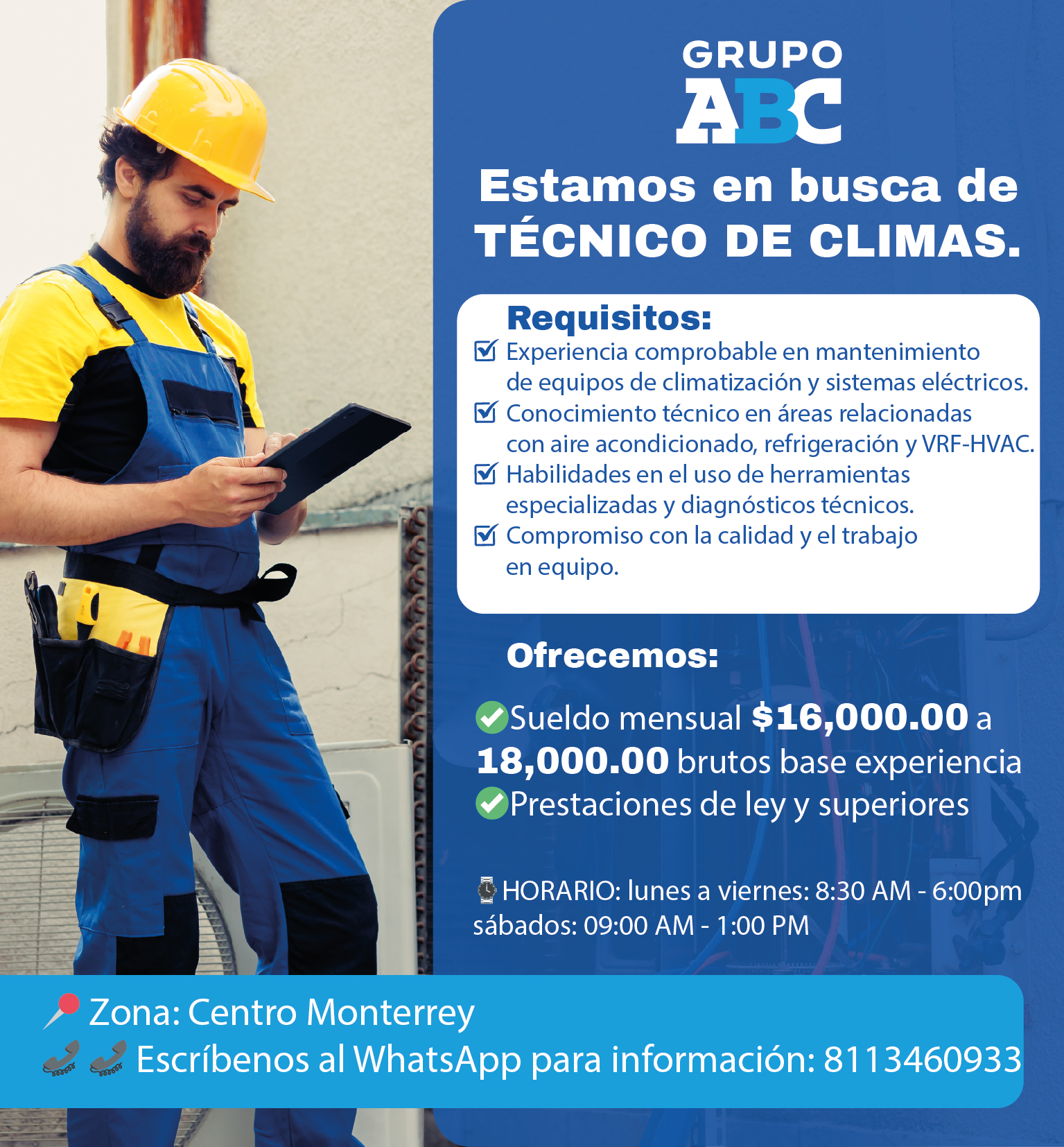 ❄️🔧 ¡Grupo ABC está contratando Técnico de Climas!