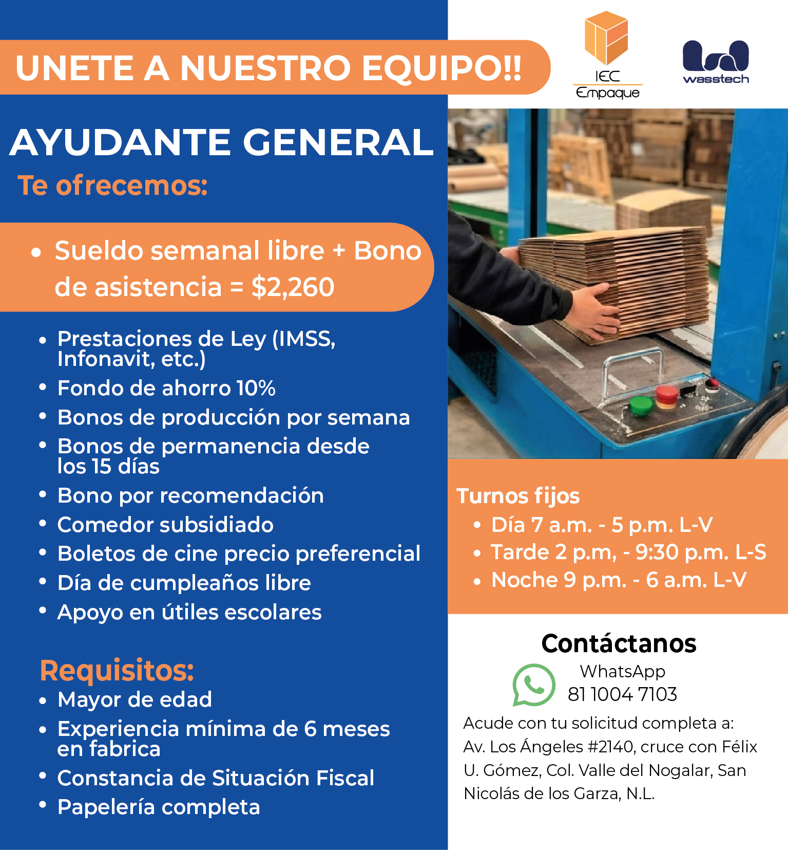 Estamos contratando Ayudantes Generales 💼