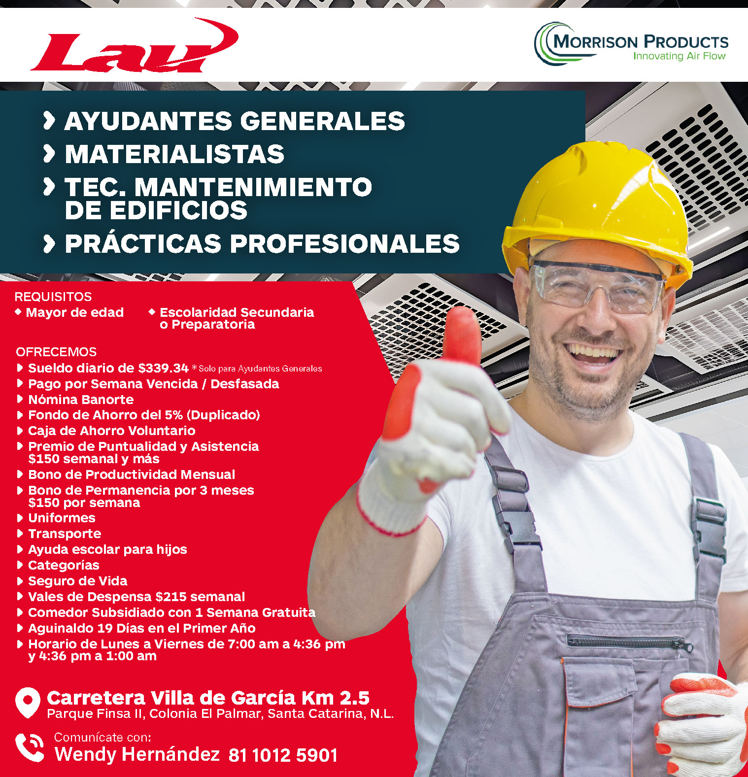 LAU INDUSTRIES te está buscando📲 Comunicate al 8110125901📍 Carretera Villa de García KM 2.5, Parque Finsa II, Colonia El Palmar, Santa Catarina NL.