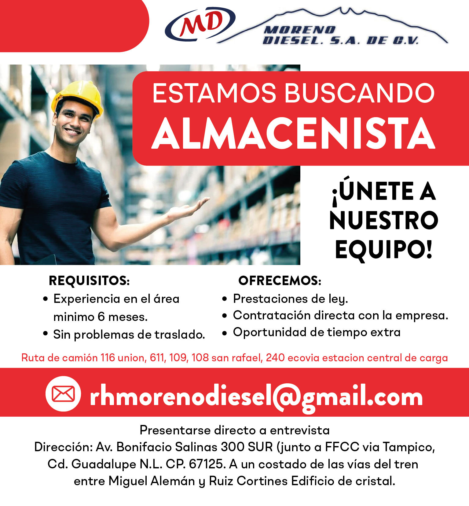 📩 Envíanos tu CV: rhmorenodiesel@gmail.com