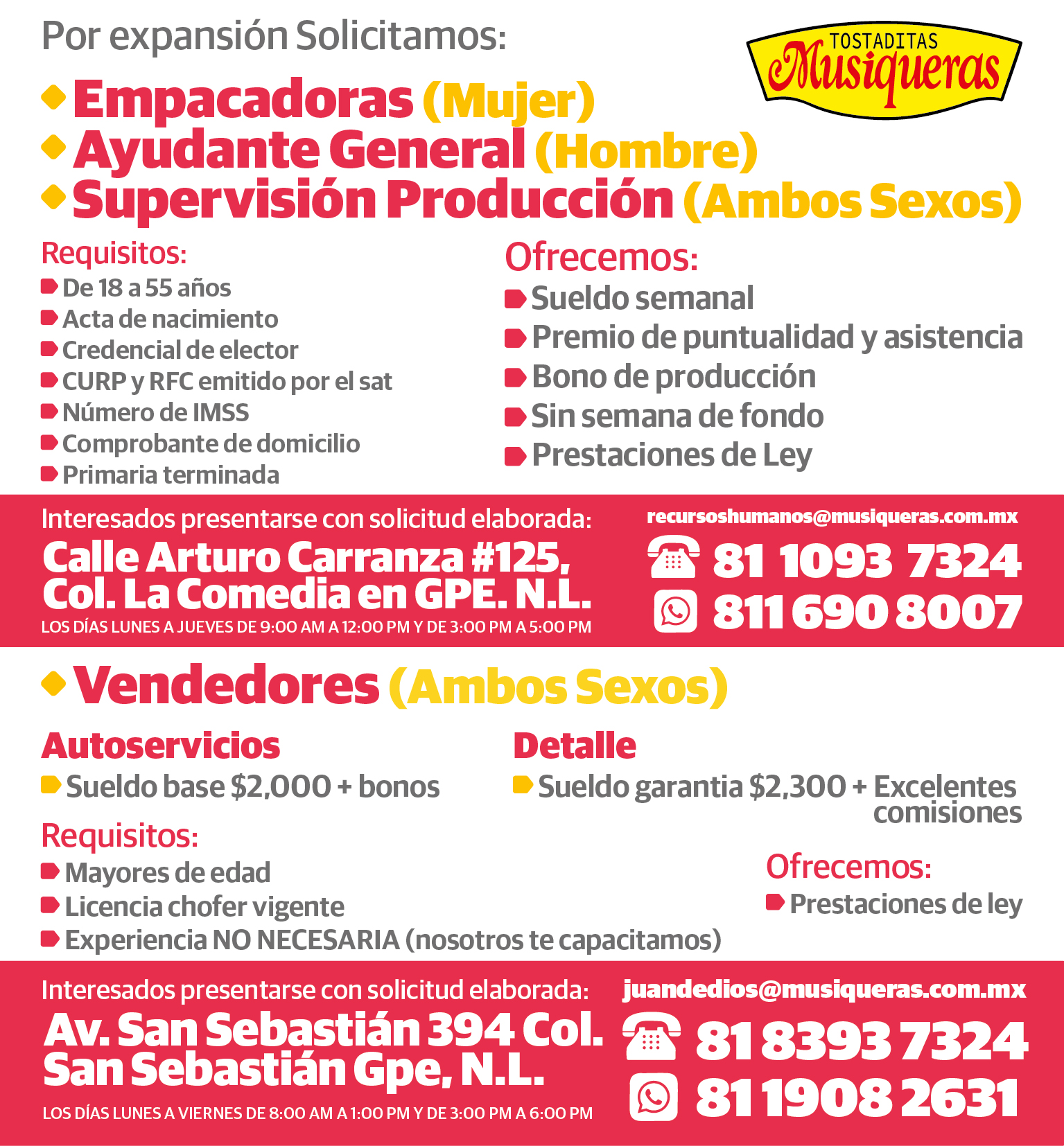 Por expansión estamos contratando personal comprometido y con ganas de crecer 💪