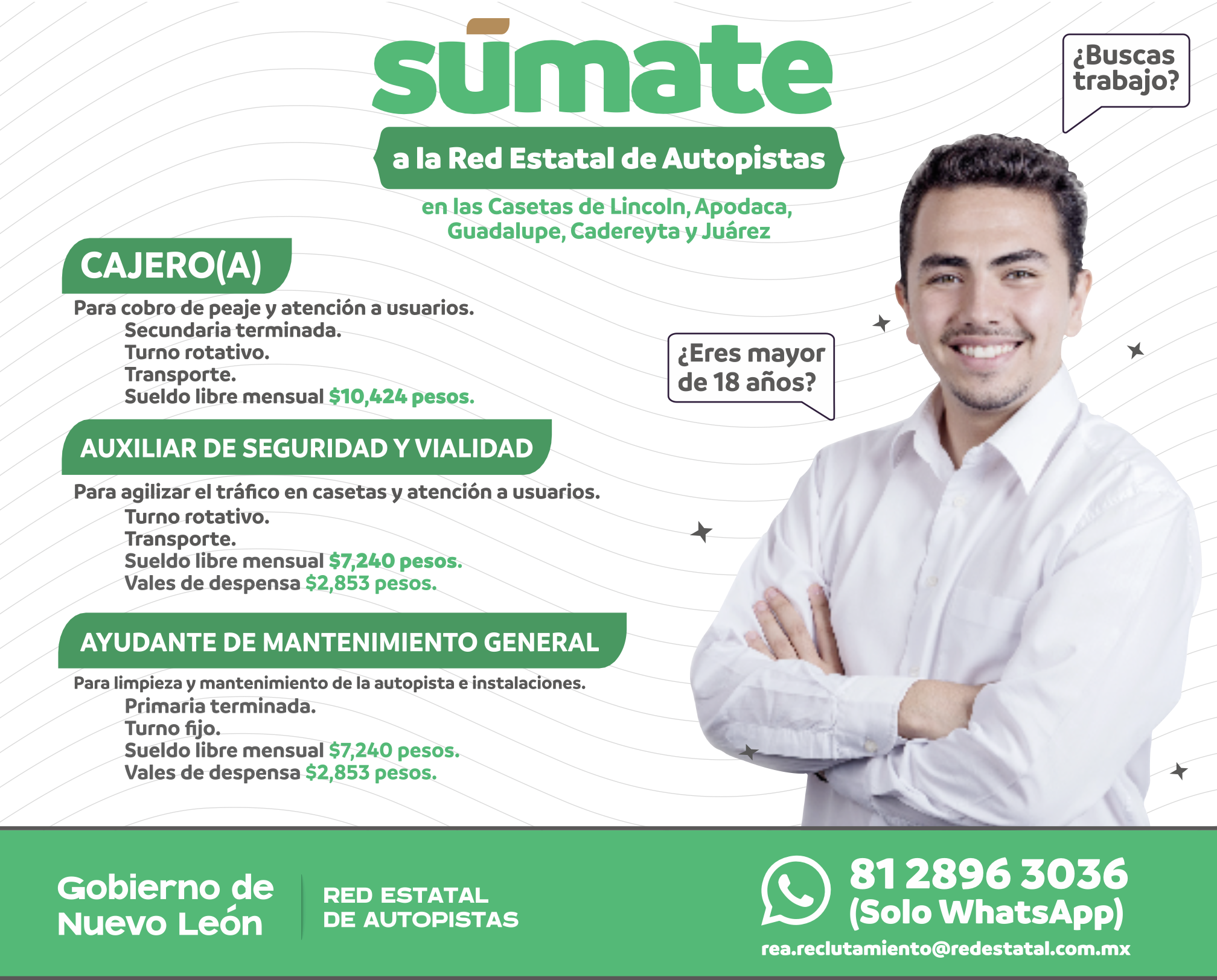 ¿Eres mayor de 18 años y buscas trabajo? Súmate colaborar a la Red Estatal de Autopistas y gana hasta más de $10,000 pesos mensuales 💰