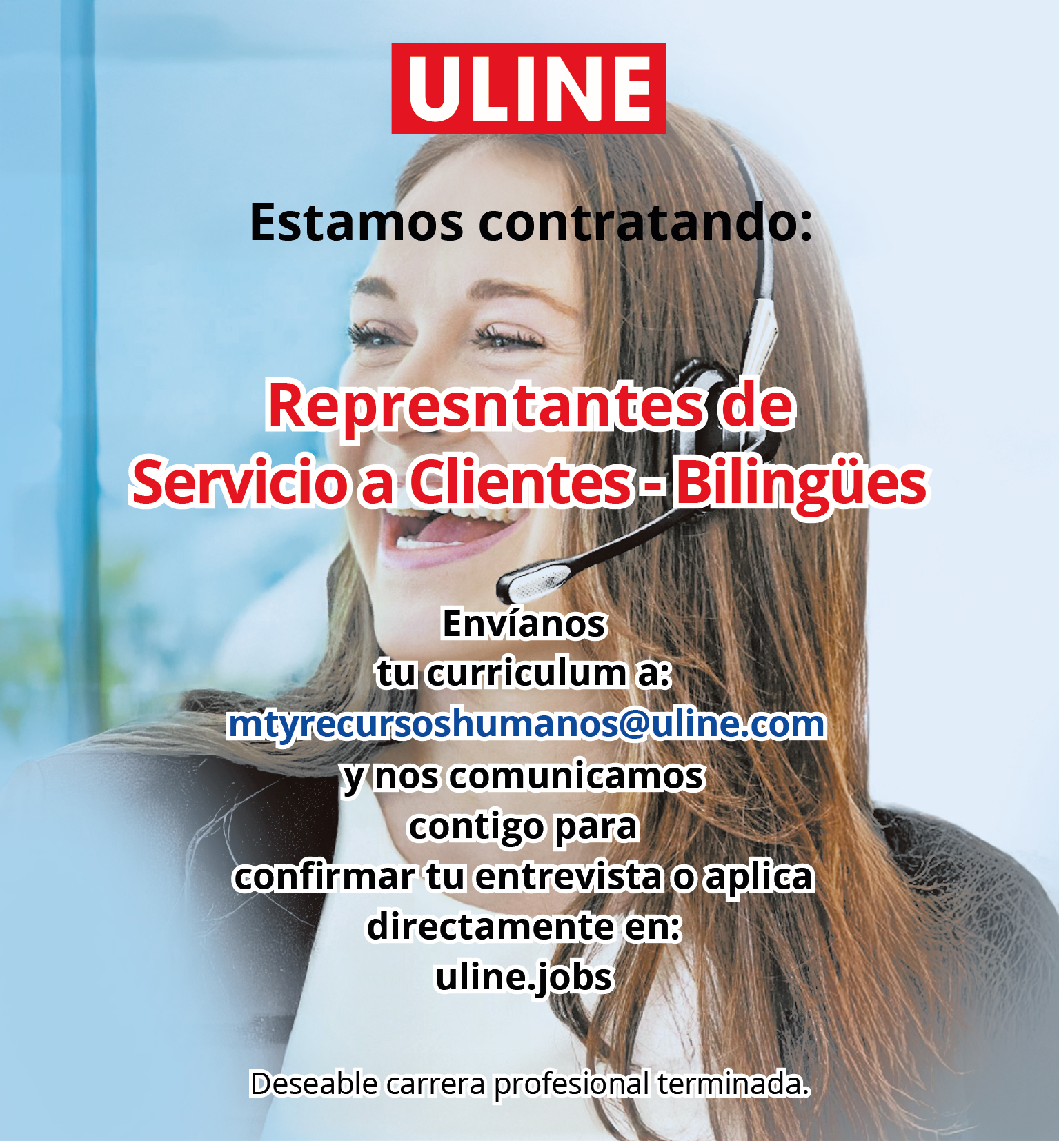 Envia tu Curriculum a: mtyrecursoshumanos@uline.com