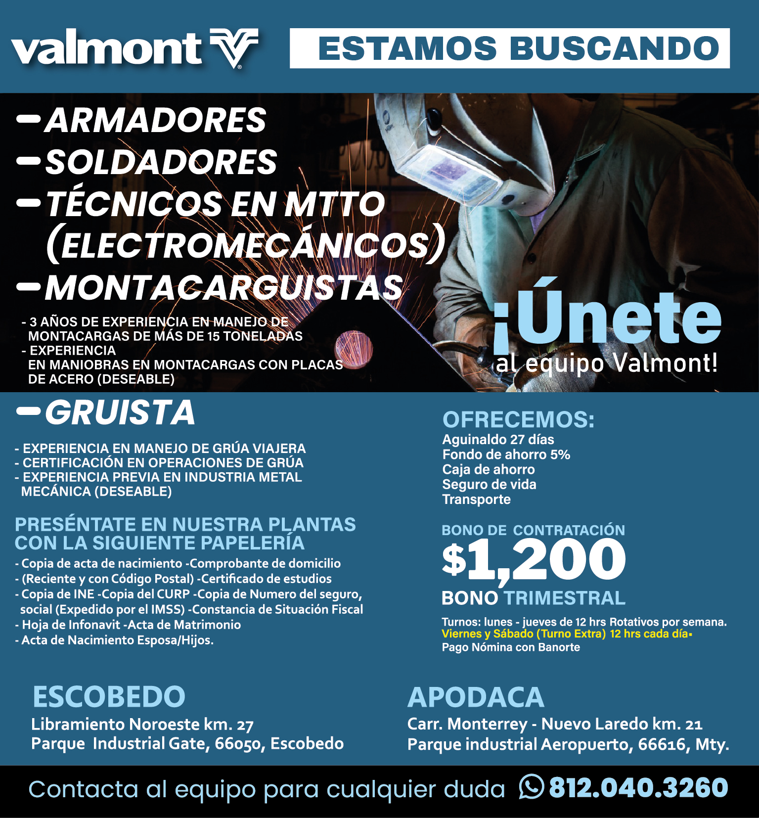 🧾 Lleva tu documentación completa y forma parte de una empresa líder en la industria metalmecánica.
